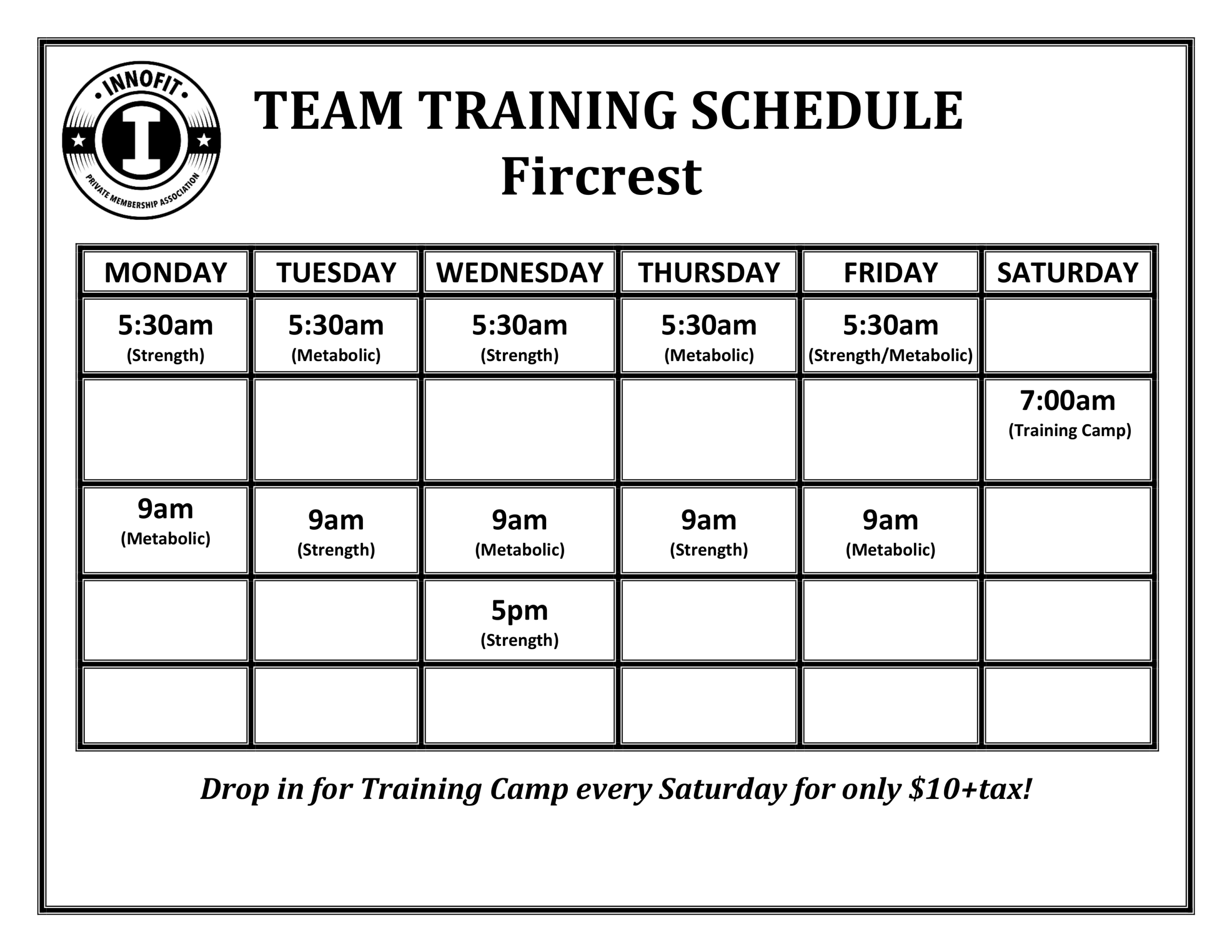 *Join Us!! Saturday "Training Camps" are open to Members and Non-Members.